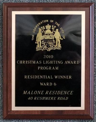 Computerized diamond-drag engraving is done on site to remove the top coloured coating to expose bare metal underneath (gold if brass, silver if aluminum). If the material has a clear coating instead of coloured, the engraved area can be oxidized to blacken it and provide a contrast to the background.